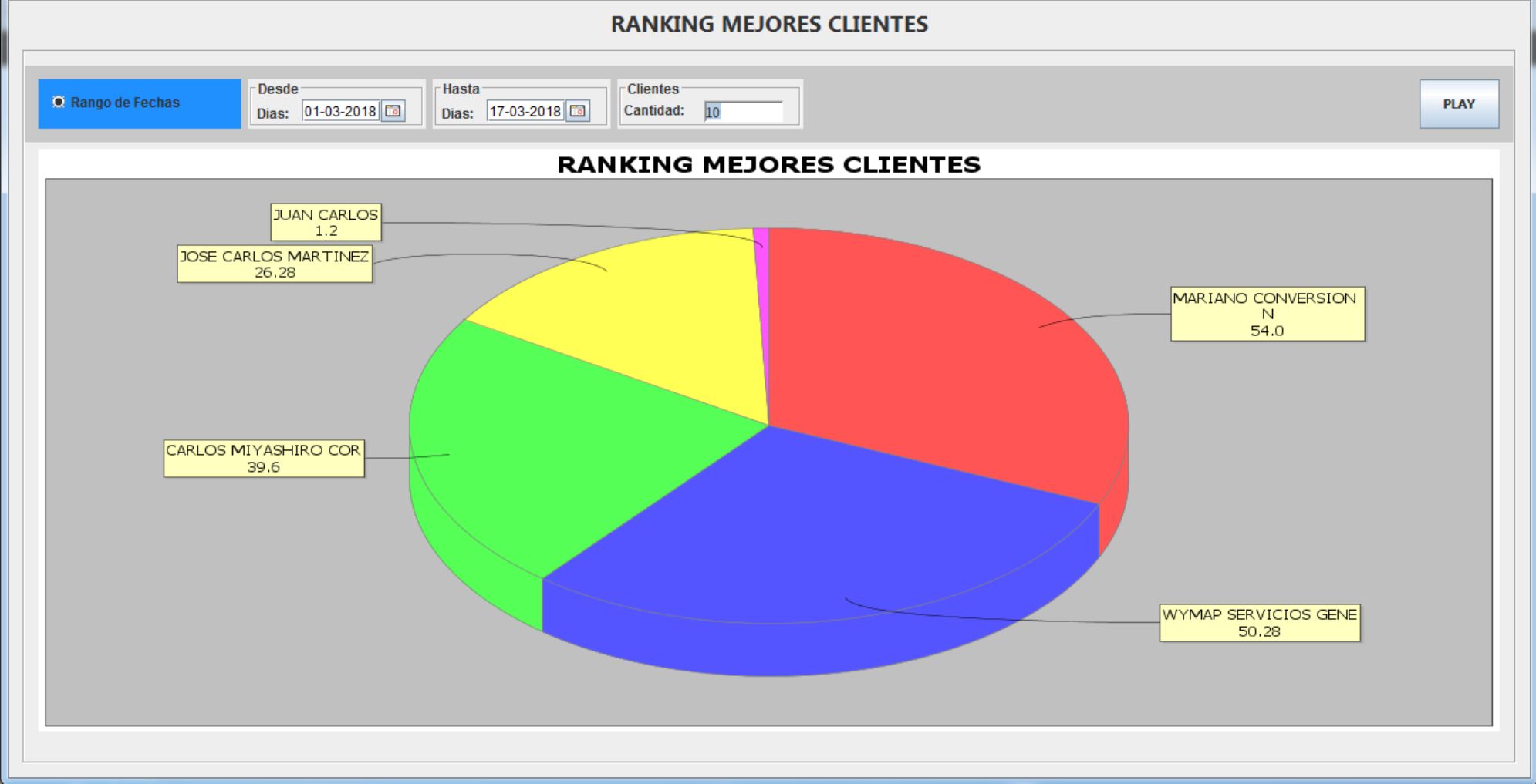 Gráfico estadístico que muestra nuestros mejores clientes, de acuerdo al volumen de compras realizadas por este, en un determinado periodo de tiempo.